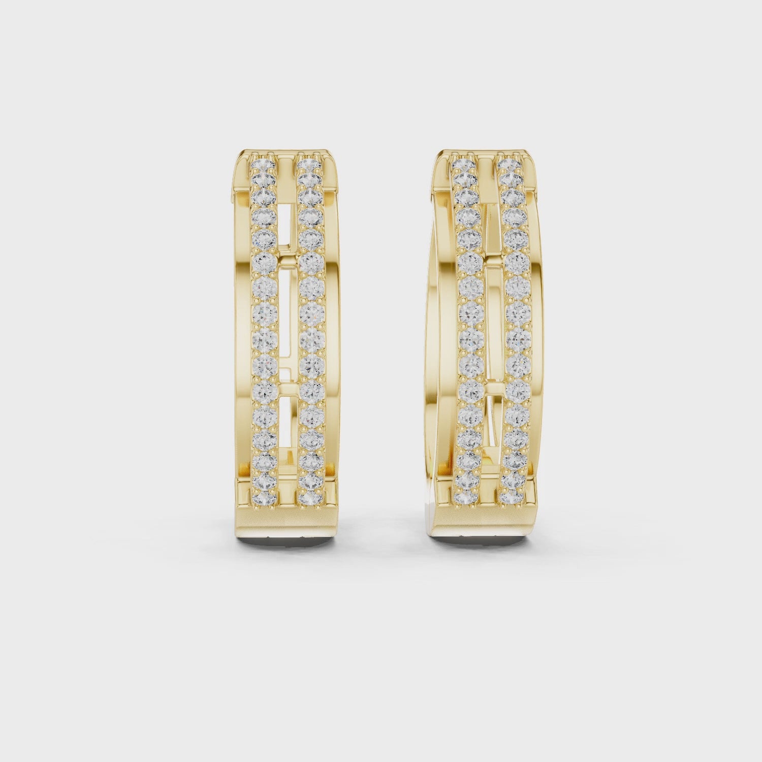 Sparkling Luxe 0.008ct 18KT Round Diamonds Half 2line Hoops Earrings - 18KT / White Gold / 0.008