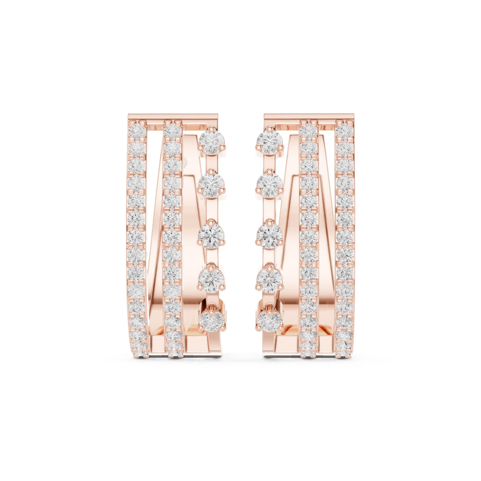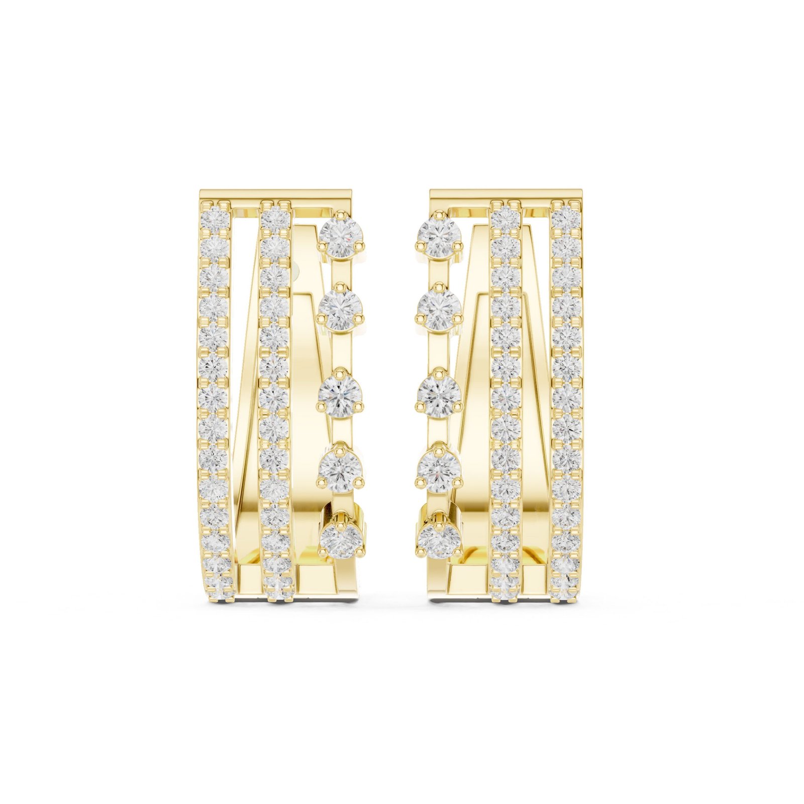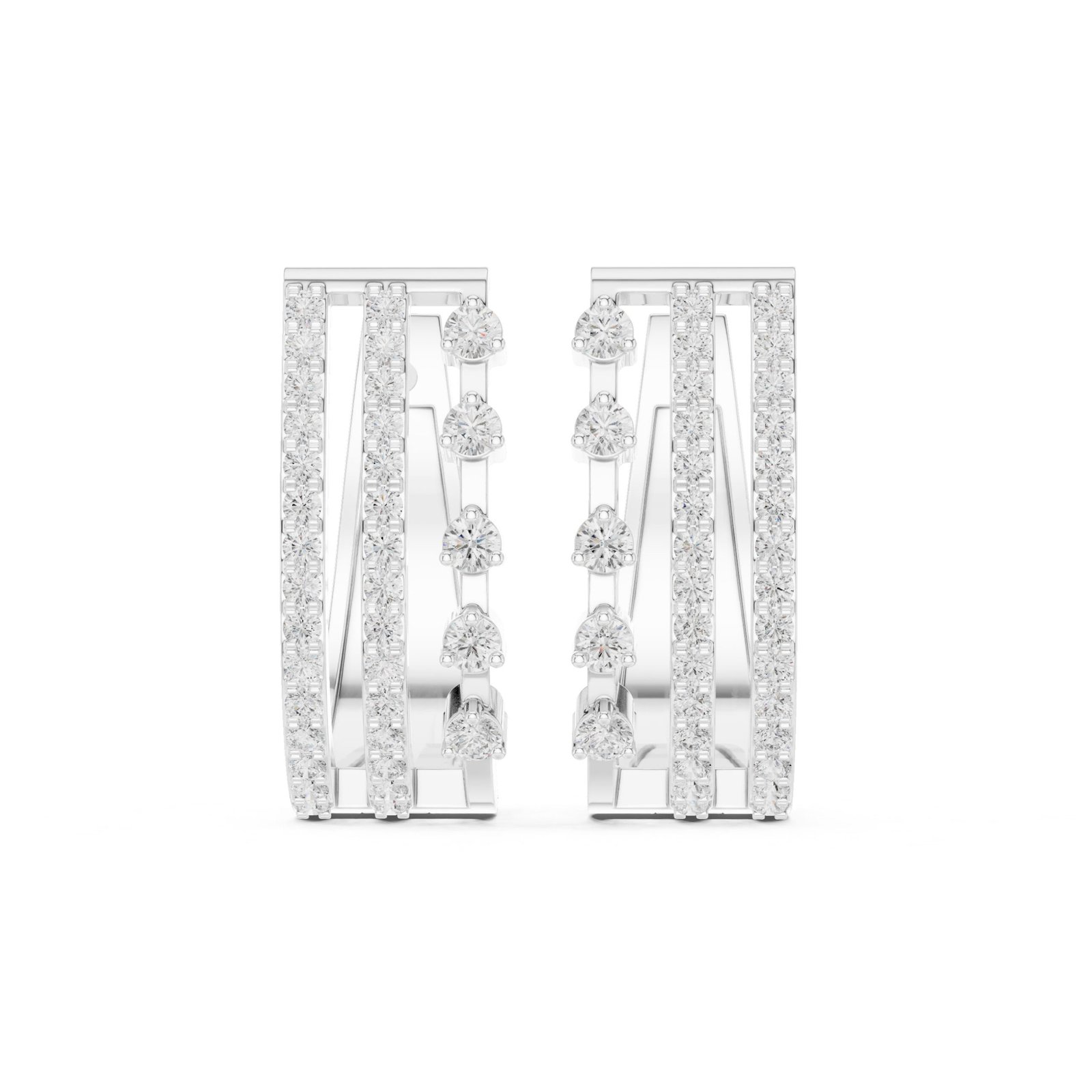 Design: White Gold, Rose Gold, Yellow Gold, Three Line Long Hoops, VVS-VS Clarity