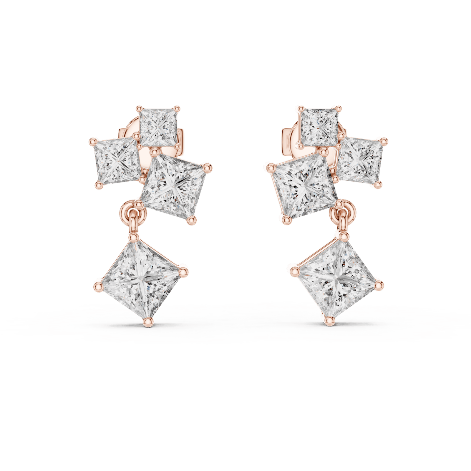 Design: Classic Four Princess Cut Diamond Earrings, VVS-VS Clarity