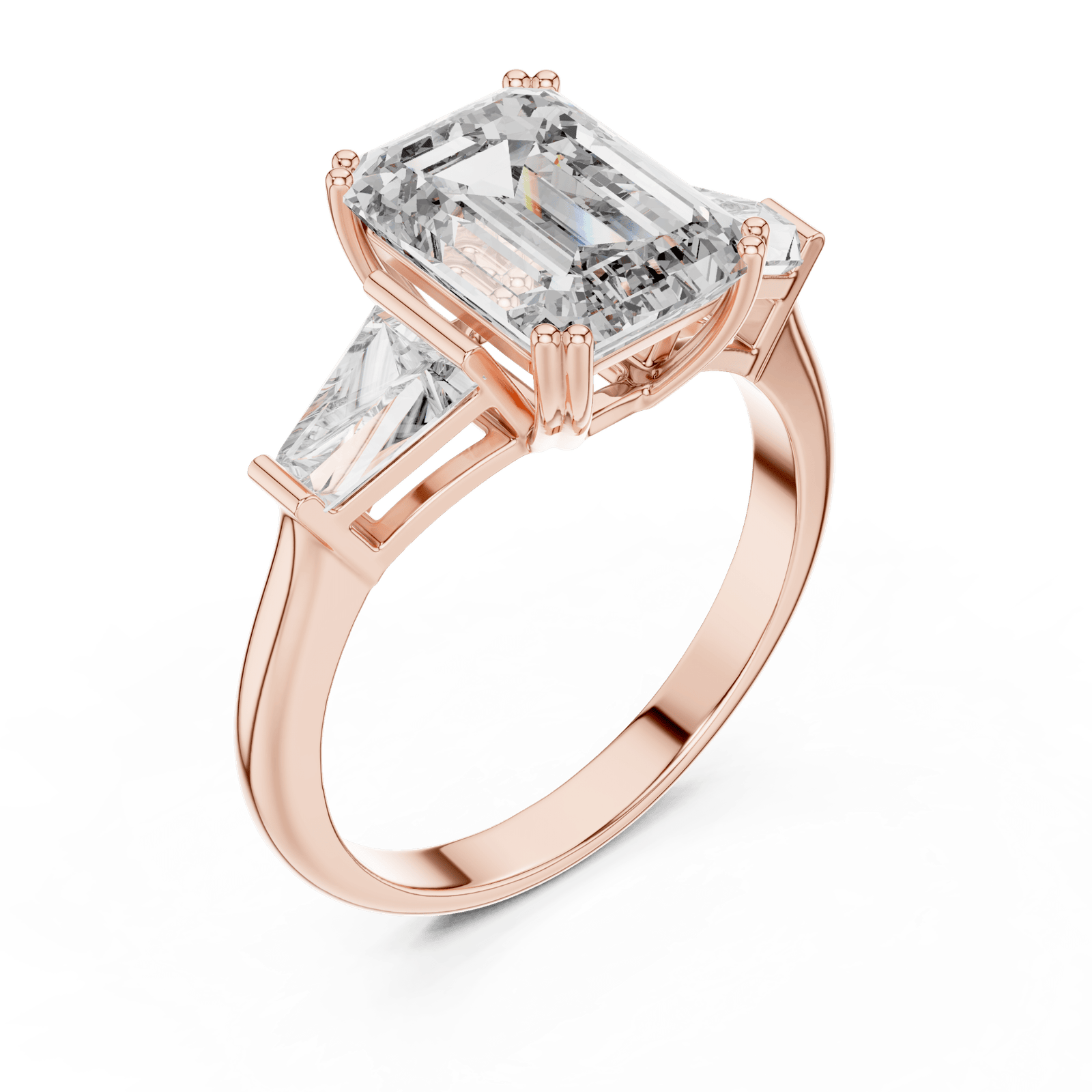 Sparkling Luxe 3.01CT Emerald Lab Diamond Three Stone Engagement Round Ring in 18KT