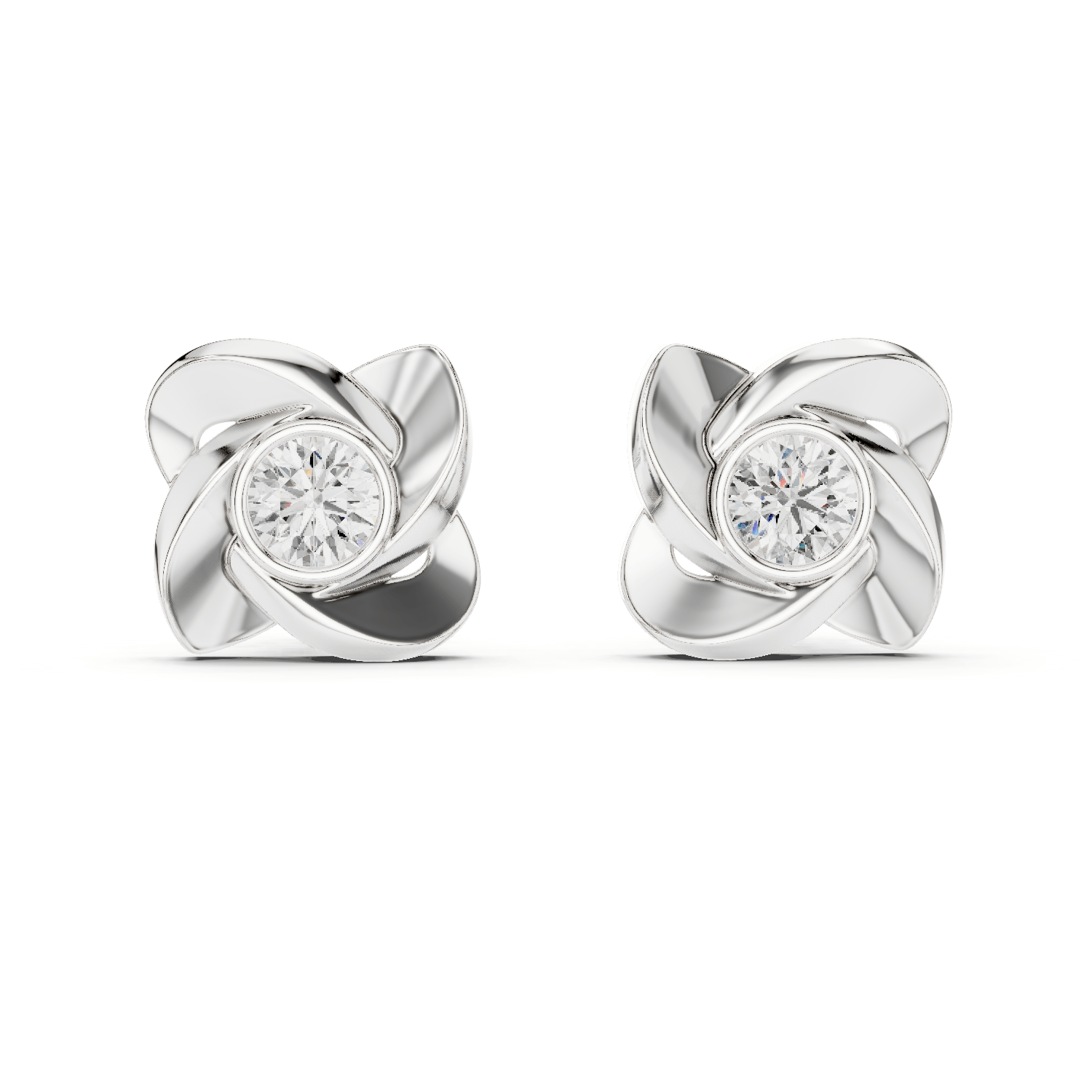 The middle of each earring has a bezel with a brilliant round-cut diamond in it. This makes the earrings look clean and safe. Great for both everyday style and special events.